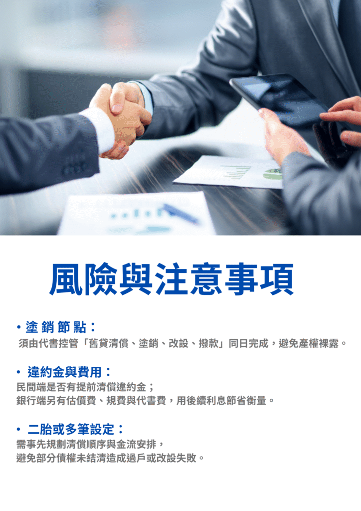 私人設定指房屋或土地的抵押權登記在民間資方名下;轉銀行就是由銀行提供新貸款,當日...